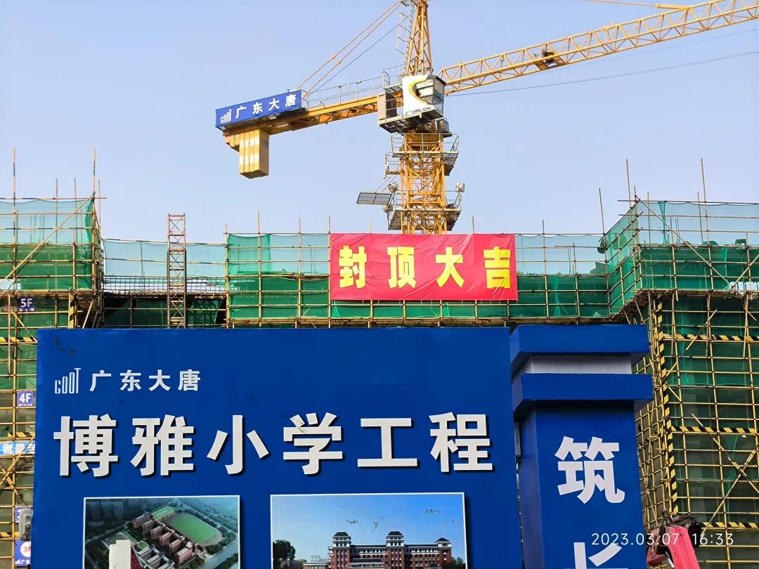 昨日(2023年3月9日),斗门博雅小学“封顶大吉”的横幅异常耀眼!