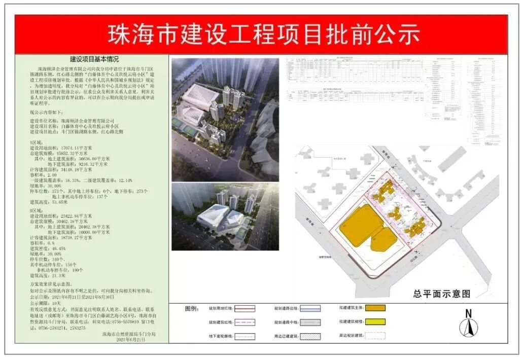 2021年6月21日,时隔半年,一则《白藤体育中心及玖悦云府小区建设工程规划许可项目批前公示》发布,这意味着官方暂命名为:白藤体育中心。此时,住宅地块开始进行桩基工程。